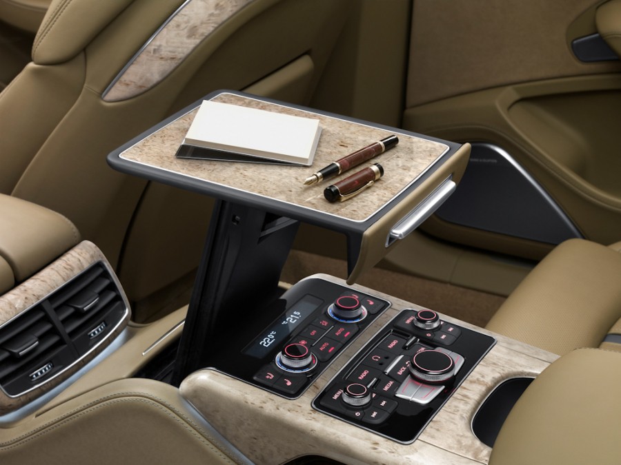 Otros detalles que denotan el halo de exclusividad del A8 L es una consola continua desde el túnel central hasta la bandeja del maletero.