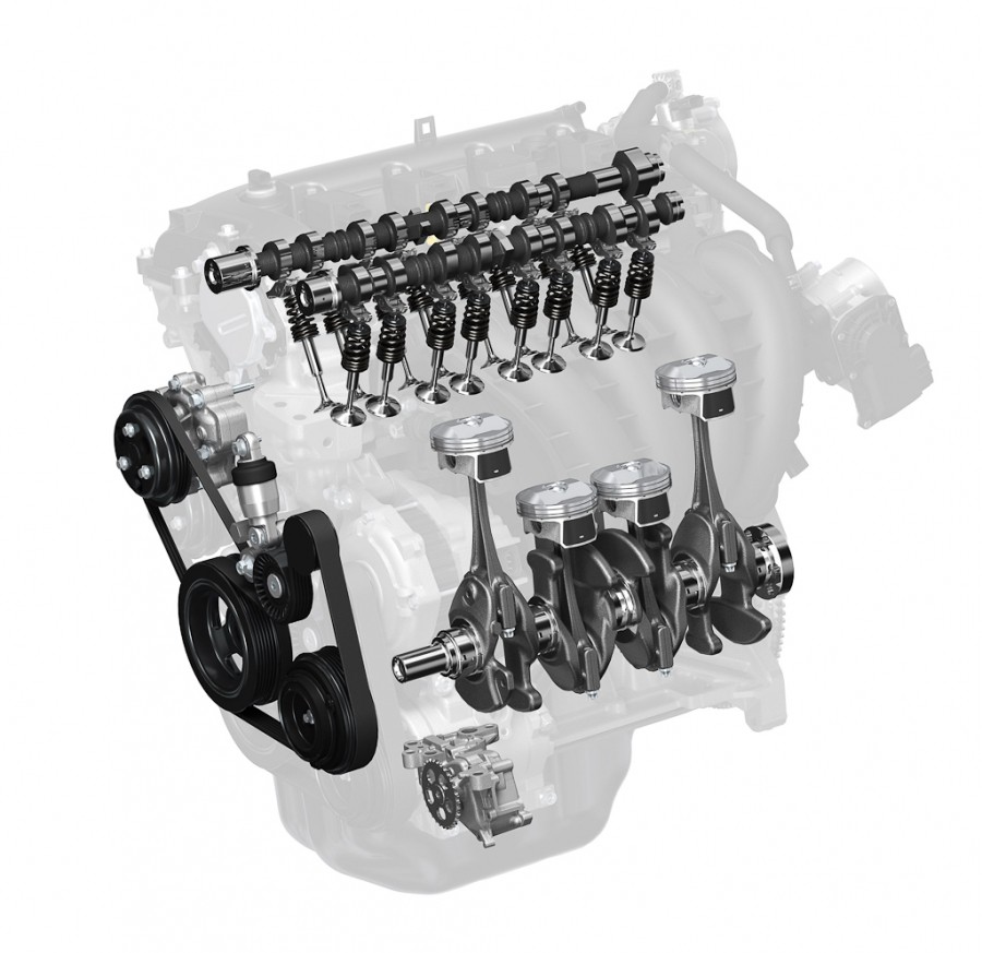 En lo que se refiere a los propulsores, el Skyactiv-G representa la base alimentada por gasolina. Una de sus características más llamativas de este bloque de inyección directa es la elevada compresión, de 14,0:1, la mayor para una mecánica de calle.