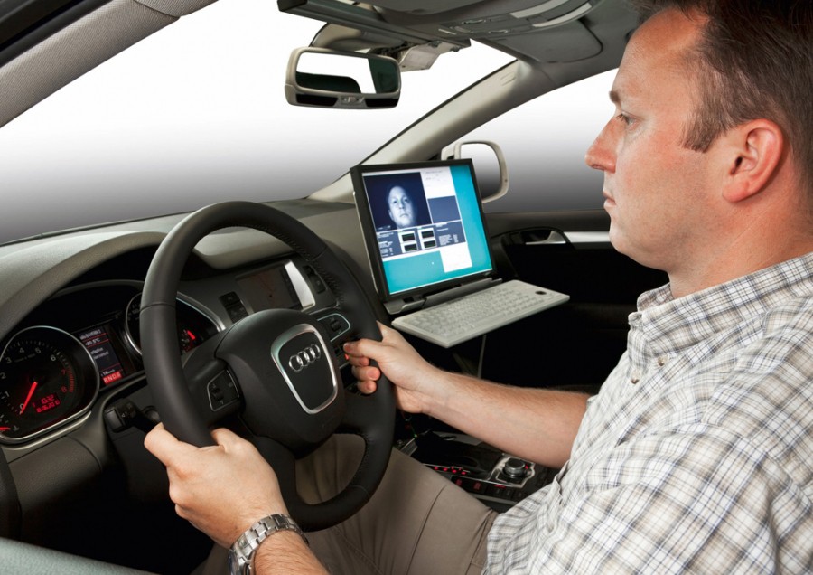 El momento de aplicación de la fuerza de frenado también puede adelantarse basándose en informaciones sobre el conductor. Los ingenieros de Audi utilizan una cámara basada en la observación para determinar el nivel de alerta y atención del conductor. La cámara graba la posición y la orientación de la cabeza del conductor para deducir su nivel de atención y adelantar la frenada automática de emergencia.