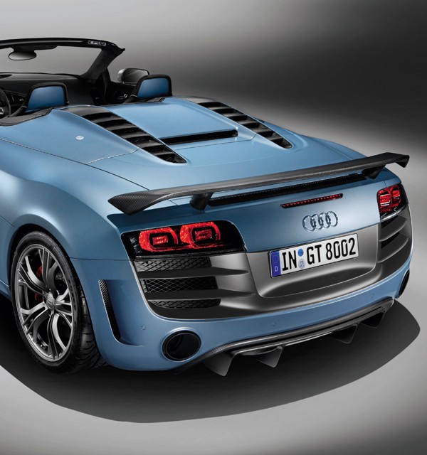 Si las variantes descapotables del súperdeportivo de Audi no eran suficiente sugerentes de por sí, ahora la firma de Ingolstadt ha incorporado a la gama del R8 Spyder una versión limitada a 333 unidades llevadas al extremo. El Audi R8 GT Spyder ocupa el lugar dejado por el R8 GT coupé producido el año pasado, y parte como éste de la base del motor 5.2 V10 FSI ya conocido, con su carrera larga, su inyección directa y su lubricación mediante cárter seco, al cual se le ha incrementado la potencia retocándole la programación de la gestión electrónica.