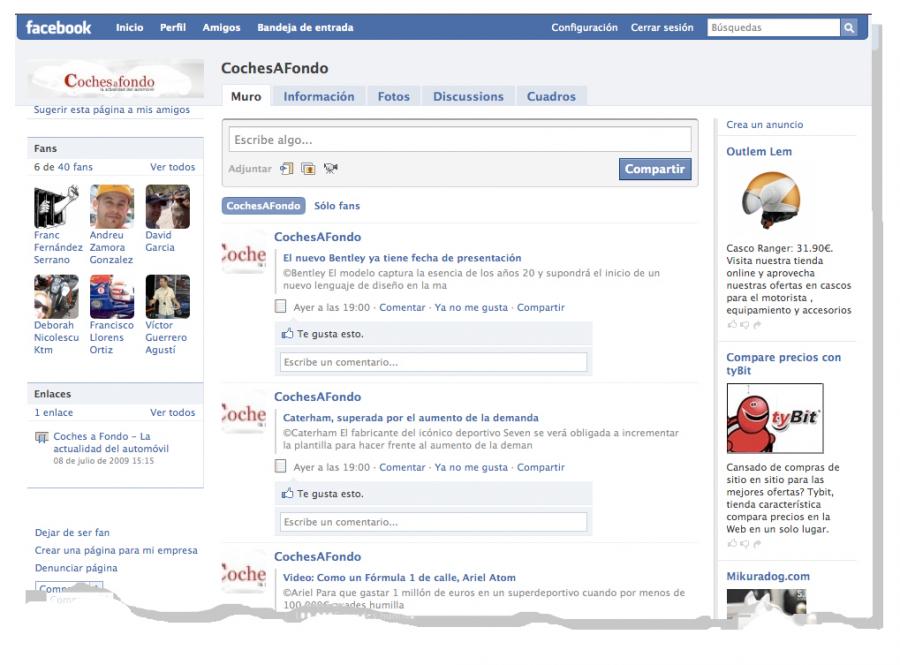 cochesafondo-com-facebook-12634562281063.jpgAhora puedes seguir toda la información del mundo del automóvil desde tu propio perfil de Facebook. En la nueva página de Facebook de Cochesafondo.com podrás acceder a todas las actualizaciones publicadas en la web, participar en foros y discusiones junto con los amantes del motor que ya se han convertido en fans de Cochesafondo.com. ¡Únete tu también al grupo!