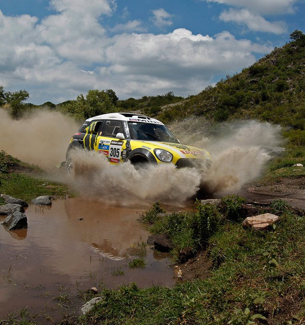 En ese terreno, era el Toyota Hilux de Giniel de Villiers y Timo Gottschalk el que fue comandando la especial durante la mayor parte del recorrido, con el Mini amarillo siempre a poca distancia, pero el rocoso 4×4 del surafricano daba muestras de debilidad mecánica poco después de empezar la segunda parte del tramo cronometrado.