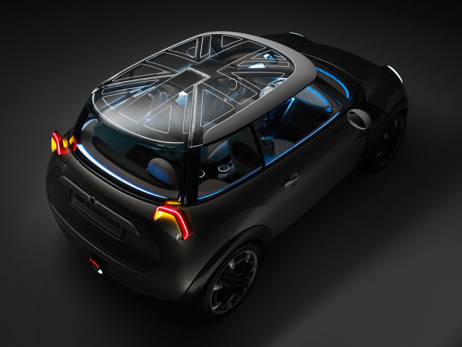 Otra de las novedades del interior se encuentra en el mando multifunción típico de Mini, el trackball. Frente a la disposición habitual en los Mini de serie, que dividen funciones entre el joystick de la consola central y las teclas del volante multifunción, gracias al trackball del radio derecho de su volante el Mini Rocketman Concept integra en el volante el control de las funciones de conducción, navegación, entretenimiento y comunicación.