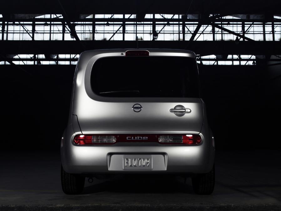Sus principales características son sus anchos faros delanteros, la forma de la calandra y su corto voladizo. Los pilotos traseros de tipo rectangular refuerzan esa sensación de amplitud. Otro elemento único del exterior del Cube es la colocación de los cristales. Los pilares A se han colocado en el extremo exterior y en posición vertical, lo que proporciona un campo de visión delantera muy amplio. La ventanilla envolvente lateral trasera es asimétrica y mejora la visibilidad posterior en diagonal para los cambios de carril y los estacionamientos marcha atrás.