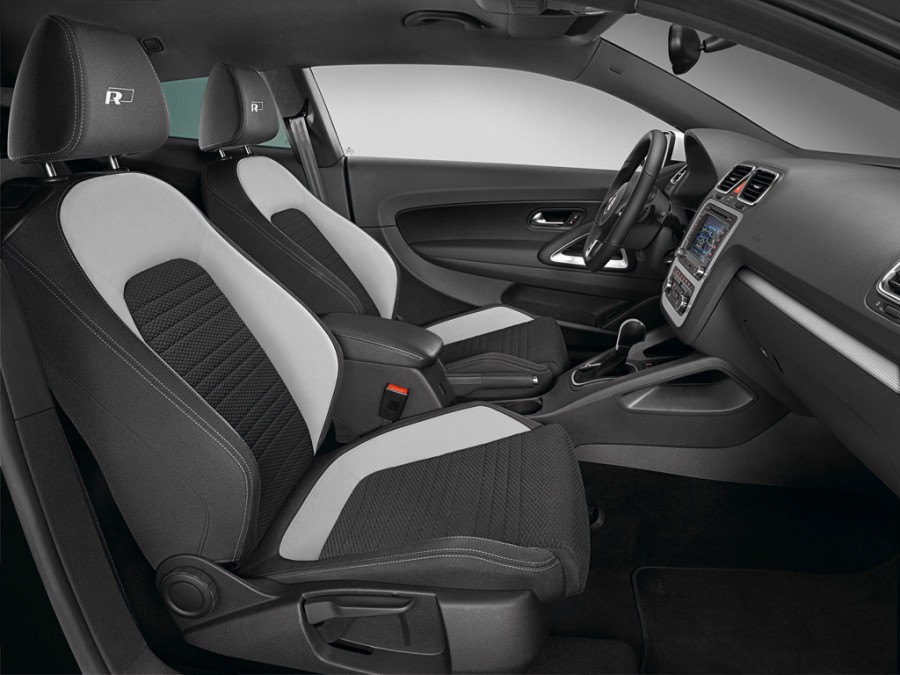 En el habitáculo, El Scirocco R-Line cuenta con asientos deportivos calefactables con tapicería Kyalami y logo R-Line en el reposacabezas, volante multifunción específico y pedales de aluminio. A todo ello se le puede añadir el paquete Cuero R-Line, que incluye los asientos deportivo calefactables con tapicería de cuero y ajuste lumbar eléctrico.