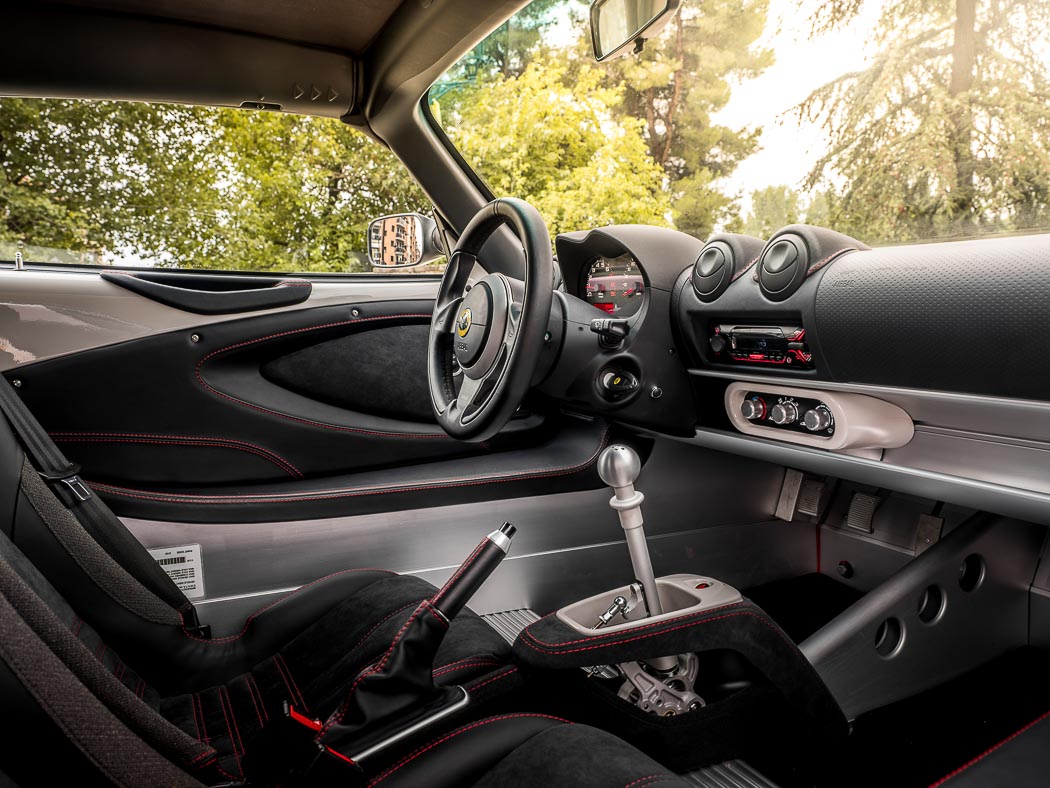 Miras la palanca del cambio, de aluminio, igual que la esfera perfectamente pulida que es el pomo, y reparas en que la timonería está casi desnuda. Nada de ocultar la conexión del conductor con la transmisión bajo una abultada consola central. ¿Por ahorrar peso? Tal vez. ¿Para convencerte del todo de que estás al volante de un coche poco común? Seguro. E insisto, este Elise es lo menos que te ofrece Lotus… No he empezado aún y ya quiero saber qué me deparan los otros. Pero no hay que precipitarse.