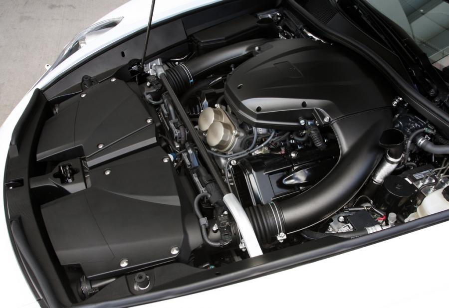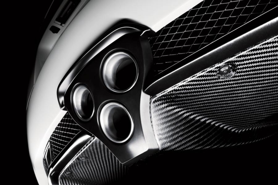 Una de las muestras de su trabajo se encuentra en el silencioso principal, hecho de titanio, que cuenta con una válvula de dos posiciones que modifica el paso del flujo de los gases de escape en función del régimen de giro del V10. Hasta las 3.000 rpm, dicha válvula permanece cerrada, con lo que los gases pasan a través de múltiples cámaras y crean un sonido grave. A partir de ese régimen, la válvula se abre con lo que el flujo pasa directamente a una cámara de resonancia antes de ser expulsado a través de las tres salidas de escape.