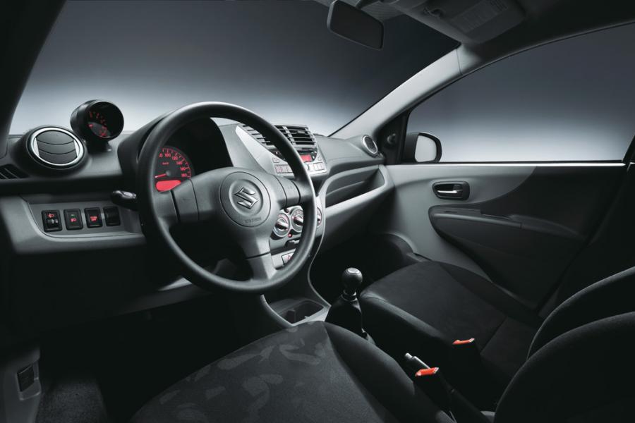 El interior tiene un diseño sencillo, con un cuadro con velocímetro grande e indicador de nivel de combustible. Las versiones más ocupadas cuentan con un cuentavueltas acoplado, inspirado en las motos Suzuki. Entre los equipamientos más destacados, están el aire