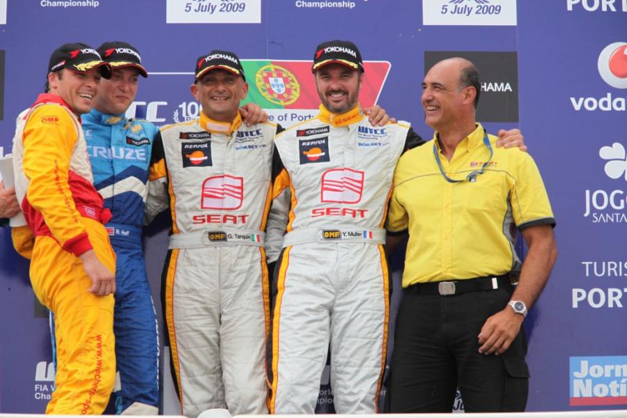 F. Llorens.- El italiano Gabriele Tarquini ha logrado una incontestable victoria en tierras portuguesas. En segunda posición ha concluido el piloto de Chevrolet, Robert Huff, que a manos de su Cruze sólo ha podido presionar al piloto italiano en las dos primeras vueltas. El último puesto del cajón ha sido ocupado por el líder del mundial Yvan Muller, que con su SEAT León TDI sigue acercándose poco a poco al título.